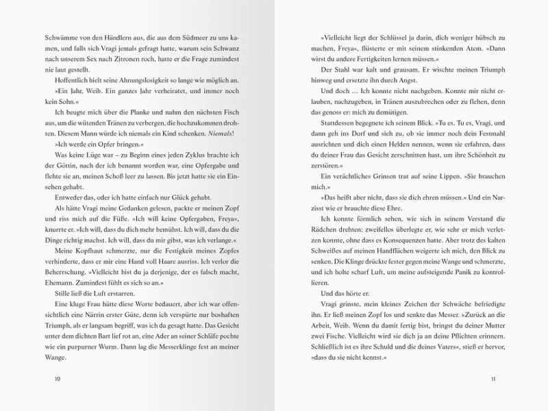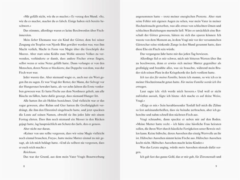 Die Geschichte wird komplett aus der Ich-Perspektive von Freya erzählt, was sehr dazu beiträgt, ihre Emotionen und Beweggründe nachvollziehen zu können. Besonders in den Momenten, in denen sie um Selbstbestimmung kämpft oder ihre magischen Kräfte entdeckt, entsteht dadurch eine Nähe zur Figur. Manchmal hätte ich mir aber auch einen Perspektivwechsel gewünscht – gerade, um auch Bjørns Gedankenwelt besser zu verstehen.