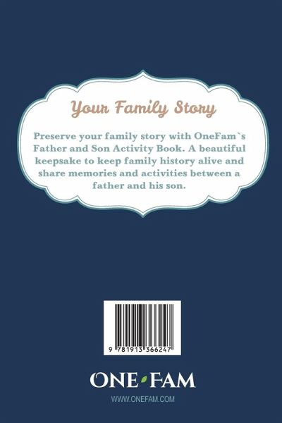 OneFam's interactive father-son activity book enables you to release the power of your family story. This stunning father and son activity book is packed full of shared activities with insightful questions, prompts, drawings, lists and lots of free writing space which is sure to strengthen the bond between a father and son. Discuss everything from early memories to growing up to feelings about life's situations and interests. A wonderfully fun and simple way for a father and son to learn about each other on a much deeper level. Interactive father and son activity book to communicate back and forth Over 65 joint activities Guided prompts and questions explore dreams, interests, and thoughts Shared fun activities to strengthen father-son relationship Beautifully designed illustrations to make this a beautiful lasting present Great communication tool Acid-free paper to preserve your memories for a lifetime 6in * 9in, 144 pages