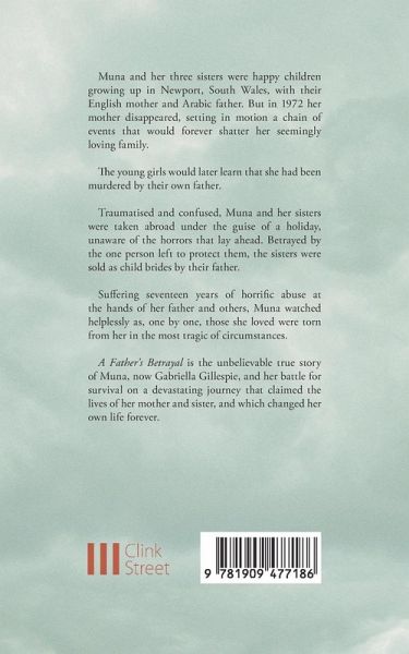 Muna and her three sisters were happy children, growing up in Newport South Wales with their English mother and Arabic father. But in 1972 her mother disappeared, setting in motion a chain of events which would forever shatter her seemingly loving family. The young girls would later learn that she had been murdered by their own father. Traumatised and confused, Muna and her sisters were taken abroad under the guise of a holiday, unaware of the horrors that lay ahead. Betrayed by the one person left to protect them, the sisters were unwittingly sold as child brides by their father. Suffering 17 years of horrific abuse at the hands of her father and others, Muna watched helplessly as, one by one, those she loved the most were torn from her, in the most tragic of circumstances. ¿ A Father's Betrayal is the unbelievable true story of Muna's desperate battle for survival, on a devastating journey which claimed the lives of her mother and sister, and changed her own life forever.