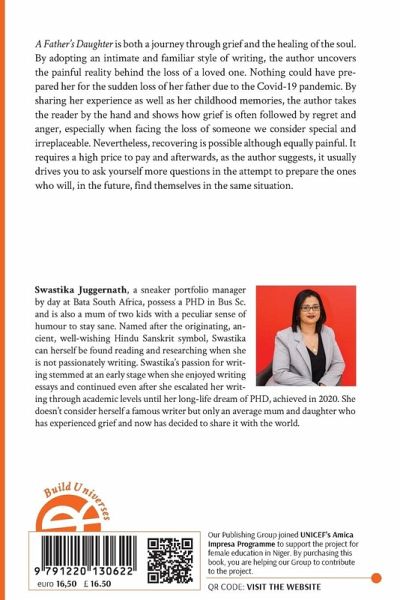 A Father's Daughter is both a journey through grief and the healing of the soul. By adopting an intimate and familiar style of writing, the author uncovers the painful reality behind the loss of a loved one. Nothing could have prepared her for the sudden loss of her father due to the Covid-19 pandemic. By sharing her experience as well as her childhood memories, the author takes the reader by the hand and shows how grief is often followed by regret and anger, especially when facing the loss of someone we consider special and irreplaceable. Nevertheless, recovering is possible although equally painful. It requires a high price to pay and afterwards, as the author suggests, it usually drives you to ask yourself more questions in the attempt to prepare the ones who will, in the future, find themselves in the same situation. Swastika Juggernath, a sneaker portfolio manager by day at Bata South Africa, possess a PHD in Bus Sc. and is also a mum of two kids with a peculiar sense of humour to stay sane. Named after the originating, ancient, well-wishing Hindu Sanskrit symbol, Swastika can herself be found reading and researching when she is not passionately writing. Swastika's passion for writing stemmed at an early stage when she enjoyed writing essays and continued even after she escalated her writing through academic levels until her long-life dream of PHD, achieved in 2020. She doesn't consider herself a famous writer but only an average mum and daughter who has experienced grief and now has decided to share it with the world.