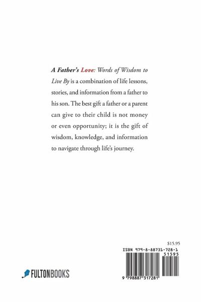 A Father's Love: Words of Wisdom to Live By is a combination of life lessons, stories, and information from a father to his son. The best gift a father or a parent can give to their child is not money or even opportunity; it is the gift of wisdom, knowledge, and information to navigate through life's journey.