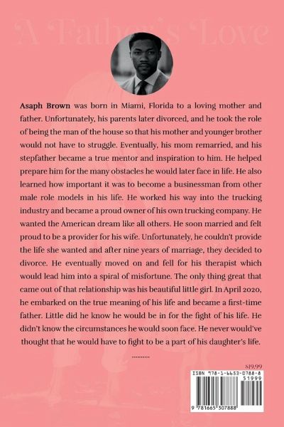 Asaph Brown was born in Miami, Florida to a loving mother and father. Unfortunately, his parents later divorced, and he took the role of being the man of the house so that his mother and younger brother would not have to struggle. Eventually, his mom remarried, and his stepfather became a true mentor and inspiration to him. He helped prepare him for the many obstacles he would later face in life. He also learned how important it was to become a businessman from other male role models in his life. He worked his way into the trucking industry and became a proud owner of his own trucking company. He wanted the American dream like all others. He soon married and felt proud to be a provider for his wife. Unfortunately, he couldn't provide the life she wanted and after nine years of marriage, they decided to divorce. He eventually moved on and fell for his therapist which would lead him into a spiral of misfortune. The only thing great that came out of that relationship was his beautiful little girl. In April 2020, he embarked on the true meaning of his life and became a first-time father. Little did he know he would be in for the fight of his life. He didn't know the circumstances he would soon face. He never would've thought that he would have to fight to be a part of his daughter's life.
