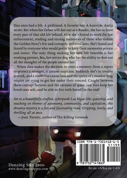 Zira once had a life. A girlfriend. A favorite bar. A hairstyle. And a secret. But when her father sells her out as a Reader, she has to leave every part of that old life behind. Now she's forced to work for law enforcement, reading and erasing memories of those who violate the Golden Nova's few and corruptly enforced laws. She's hated and feared by everyone who would prefer to keep their memories private and intact. The only thing making her new life bearable is her working partner, Bea, her service dog who has the ability to shut out all the thoughts of the people around her. When Zira makes the decision to omit a memory from a report to protect a stranger, it arouses suspicion. Suddenly she's in trouble at work, and a vindictive casino boss and the queen of a massive drug empire are vying to get her under their control. Caught between three corrupt factions and the vacuum of space, can Zira keep her loved ones safe, and be able to live with herself in the end?