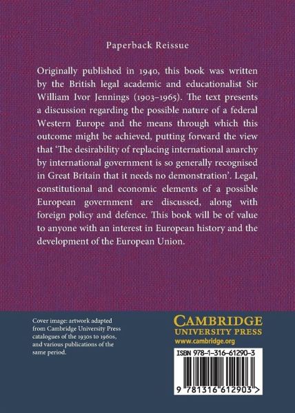 Originally published in 1940, this book was written by the British legal academic and educationalist Sir William Ivor Jennings (1903-65). The text presents a discussion regarding the possible nature of a federal Western Europe and the means through which this outcome might be achieved, putting forward the view that 'The desirability of replacing international anarchy by international government is so generally recognised in Great Britain that it needs no demonstration'. Legal, constitutional and economic elements of a possible European government are discussed, along with foreign policy and defence. This book will be of value to anyone with an interest in European history and the development of the European Union.