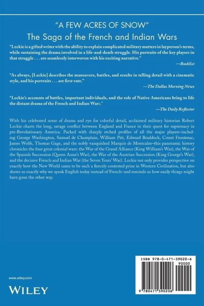 With his celebrated sense of drama and eye for colorful detail, acclaimed military historian Robert Leckie charts the long, fierce conflict between England and France in their quest for supremacy in pre-Revolutionary America. Packed with profiles of all the major players -- including George Washington, Samuel de Champlain, William Pitt, Edward Braddock, Count Frontenac, James Wolfe, Thomas Gage, and the nobly vanquished Marquis de Montcalm -- this book chronicles the great colonial wars and the decisive French and Indian Wars (the Seven Years War). Leckie shows not only how the New World came to be such a fiercely contested prize in Western Civilization, but why we speak English today instead of French -- and reminds us how easily things might have gone the other way.