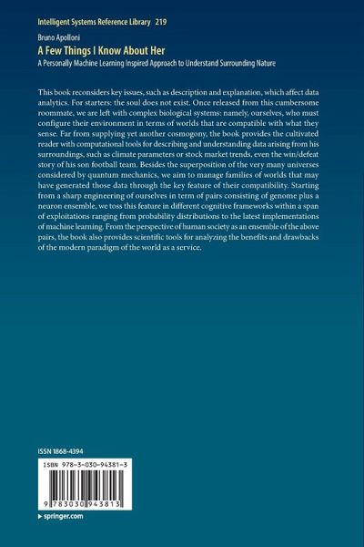 This book reconsiders key issues, such as description and explanation, which affect data analytics. For starters: the soul does not exist. Once released from this cumbersome roommate, we are left with complex biological systems: namely, ourselves, who must configure their environment in terms of worlds that are compatible with what they sense. Far from supplying yet another cosmogony, the book provides the cultivated reader with computational tools for describing and understanding data arising from his surroundings, such as climate parameters or stock market trends, even the win/defeat story…mehr