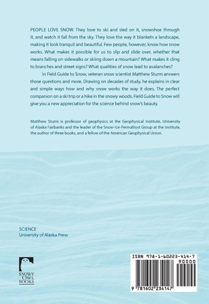 People love snow. They love to ski and sled on it, snowshoe through it, and watch it fall from the sky. They love the way it blankets a landscape, making it look tranquil and beautiful. Few people, however, know how snow works. What makes it possible for us to slip and slide over, whether that's falling on sidewalks or skiing down a mountain? What makes it cling to branches and street signs? What qualities of snow lead to avalanches? In A Field Guide to Snow, veteran snow scientist Matthew Sturm answers those questions and more. Drawing on decades of study, he explains in clear and simple ways how and why snow works the way it does. The perfect companion a ski trip or a hike in the snowy woods, A Field Guide to Snow will give you a new appreciation for the science behind snow's beauty.