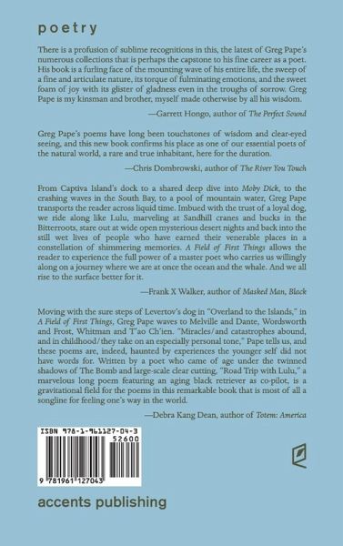 In A Field of First Things, you can read some of Greg Pape's best work, featuring narrative poems of beauty and compassion, poems addressing the complex interdependence between humans and the natural world.
