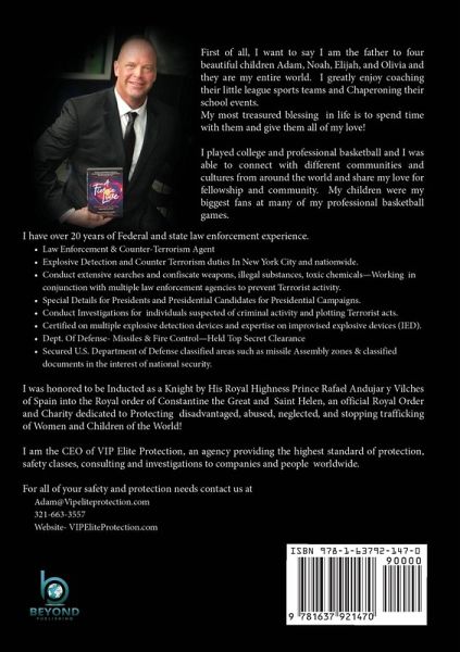 What would you do if someone you knew brought a gun to the öce and threatened to kill everyone? Would you panic? Would you pray? Would you try to talk them down from this place that you have never seen them in before? Based on a true story that is all too common, a group of co-workers who survive that terrible day, learn how to live again. "My heart beat faster as I read this story, knowing that it could happen to any one of us without warning. What would I do? I hope I never have to ¿nd out." Ilona Parunakova, Bestselling Author and 2x TEDx Speaker First of all, I want to say I am the father to four beautiful children Adam, Noah, Elijah, and Olivia and they are my entire world. I greatly enjoy coaching their little league sports teams and Chaperoning their school events. My most treasured blessing in life is to spend time with them and give them all of my love! I played college and professional basketball and I was able to connect with different communities and cultures from around the world and share my love for fellowship and community. My children were my biggest fans at many of my professional basketball games. From the Author: I have over 20 years of Federal and state law enforcement experience. ¿ Law Enforcement & Counter-Terrorism Agent ¿ Explosive Detection and Counter Terrorism duties In New York City and nationwide. ¿ Conduct extensive searches and confiscate weapons, illegal substances, toxic chemicals-Working in conjunction with multiple law enforcement agencies to prevent Terrorist activity. ¿ Special Details for Presidents and Presidential Candidates for Presidential Campaigns. ¿ Conduct Investigations for individuals suspected of criminal activity and plotting Terrorist acts. ¿ Certified on multiple explosive detection devices and expertise on improvised explosive devices (IED). ¿ Dept. Of Defense- Missiles & Fire Control-Held Top Secret Clearance ¿ Secured U.S. Department of Defense classified areas such as missile Assembly zones & classified documents in the interest of national security. -I was honored to be Inducted as a Knight by His Royal Highness Prince Rafael Andujar y Vilches of Spain into the Royal order of Constantine the Great and Saint Helen, an official Royal Order and Charity dedicated to Protecting disadvantaged, abused, neglected, and stopping trafficking of Women and Children of the World! -I am the CEO of VIP Elite Protection, an agency providing the highest standard of protection, safety classes, consulting and investigations to companies and people worldwide. For all of your safety and protection needs contact us at Adam@Vipeliteprotection.com 321-663-3557 Website- VIPEliteProtection.com