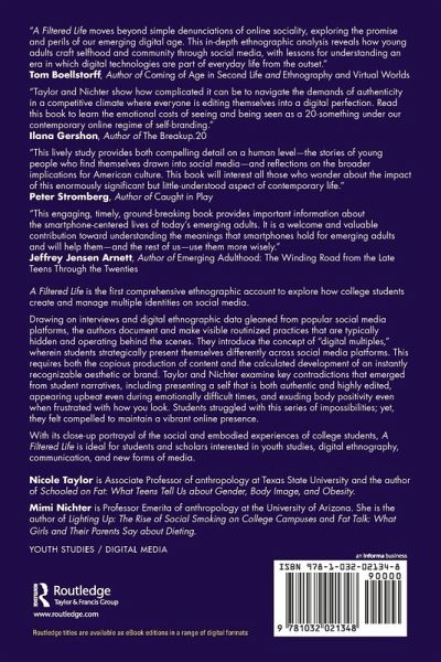 With its close-up portrayal of the social and embodied experiences of college students, A Filtered Life is ideal for students and scholars interested in youth studies, digital ethnography, communication, and new forms of media.