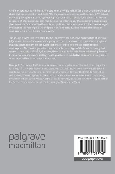 Are painkillers mundane medications safe for use to ease human suffering? Or are they drugs of abuse that cause addiction and death? Do they ameliorate pain, or do they cause it? This book explores growing interest among medical practitioners media outlets about the 'misuse' or 'abuse' of pharmaceutical pain medications. It contextualizes these emerging discourses of pharmaceutical 'abuse' within the social and political histories from which they have emerged by exploring the role of pleasure and pain in shaping individualized modes of medication consumption in a neoliberal age of anxiety.