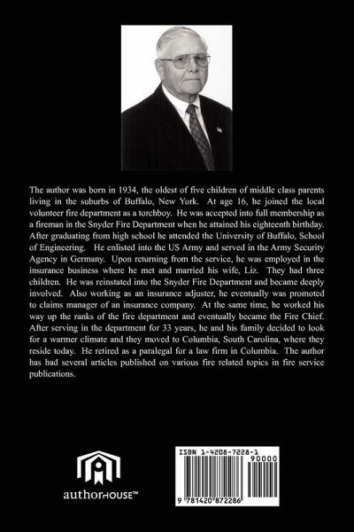A Fire Chief's Story relates the experiences of a young man who joins a volunteer fire department at age 16, as a torchboy, and is accepted as a fireman at age 18. Over the years of dedicated service, he eventually works his way up to the position of Fire Chief. It details his experiences fighting fires and performing rescues. Also, it explains why firemen brake windows and chop open roofs performing their task of fire suppression. There are descriptions of the difficulty of fighting fires in the sub-zero Western New York winters and the dangers faced by firemen when attacking a fire in a burning building that is severely weakened. The author was instrumental in forming the first volunteer paramedic unit in the country. It relates some unpleasant experiences such as his father's loss of a leg and a brother fireman dying in the line of duty.