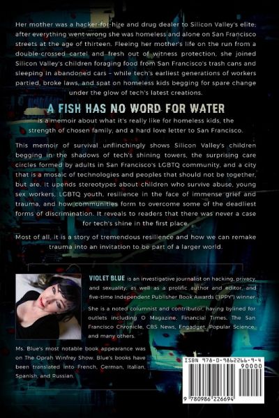 WINNER: 2023 Independent Publisher Book Awards GOLD FINALIST: 2023 National Indie Excellence Awards "In the superb A Fish Has No Word For Water, her highly readable memoir, Blue plunges readers into a life that is both a freewheeling adventure tale and a clear-eyed survey of stories of human wreckage... Sharp dialogue, incisive observations, and polished prose." -BookLife EDITOR'S PICK ¿ "A gripping account of survival and a condemnation of the conditions that marginalize and endanger the unsheltered." -KIRKUS ¿¿Her mother was a hacker-for-hire and drug dealer to Silicon Valley's elite; after everything went wrong she was homeless and alone on San Francisco streets at the age of thirteen. Fleeing her mother's life on the run from a double-crossed cartel and fresh out of witness protection, she joined Silicon Valley's children foraging food from San Francisco's trash cans and sleeping in abandoned cars -- while tech's earliest generations of workers partied, broke laws, and spat on homeless kids begging for spare change under the glow of tech's latest creations. A Fish Has No Word For Water is a memoir about what it's really like for homeless kids, the strength of chosen family, and a hard love letter to San Francisco. This memoir of survival unflinchingly shows Silicon Valley's children begging in the shadows of tech's shining towers, the surprising care circles formed by adults in San Francisco's LGBTQ community, and a city that is a mosaic of technologies and peoples that should not be together, but are. It upends stereotypes about children who survive abuse, young sex workers, LGBTQ youth, resilience in the face of immense grief and trauma, and how communities form to overcome some of the deadliest forms of discrimination. It reveals to readers that there was never a case for tech's shine in the first place. Most of all, it is a story of tremendous resilience and how we can remake trauma into an invitation to be part of a larger world.