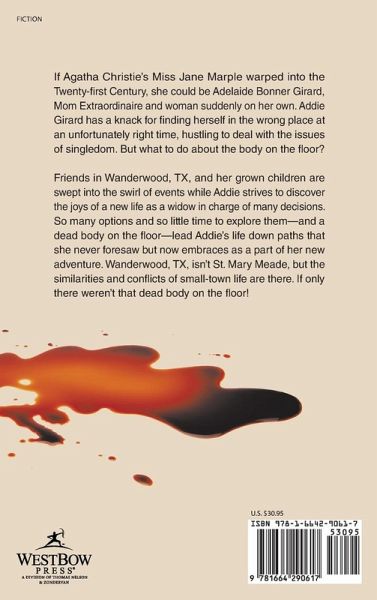 If Agatha Christie's Miss Jane Marple warped into the Twenty-first Century, she could be Adelaide Bonner Girard, Mom Extraordinaire and woman suddenly on her own. Addie Girard has a knack for finding herself in the wrong place at an unfortunately right time, hustling to deal with the issues of singledom. But what to do about the body on the floor? Friends in Wanderwood, TX, and her grown children are swept into the swirl of events while Addie strives to discover the joys of a new life as a widow in charge of many decisions. So many options and so little time to explore them-and a dead body on the floor-lead Addie's life down paths that she never foresaw but now embraces as a part of her new adventure. Wanderwood, TX, isn't St. Mary Meade, but the similarities and conflicts of small-town life are there. If only there weren't that dead body on the floor!
