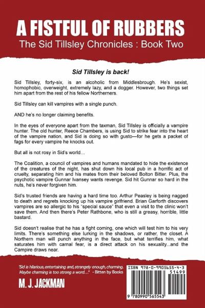 Sid Tillsley is back! Sid Tillsley, forty-six, is an alcoholic from Middlesbrough. He's sexist, homophobic, overweight, extremely lazy, and a dogger. However, two things set him apart from the rest of his fellow Northerners. Sid Tillsley can kill vampires with a single punch. AND he's no longer claiming benefits. In the eyes of everyone apart from the taxman, Sid Tillsley is officially a vampire hunter. The old hunter, Reece Chambers, is using Sid to strike fear into the heart of the vampire nation, and Sid is doing so with gusto-for he gets a packet of fags for every vampire he knocks out. But all is not rosy in Sid's world... The Coalition, a council of vampires and humans mandated to hide the existence of the creatures of the night, has shut down his local pub in a horrific act of cruelty, separating him and his mates from their beloved Bolton Bitter. Plus, the psychotic vampire Gunnar Ivansey wants revenge. Sid hit Gunnar so hard in the nuts, he's never forgiven him. Sid's trusted friends are having a hard time too. Arthur Peasley is being nagged to death and regrets knocking up his vampire girlfriend. Brian Garforth discovers vampires are so allergic to his "special sauce" that even a visit to the clinic won't save them. And then there's Peter Rathbone, who is still a greasy, horrible, little bastard. Sid doesn't realise that he has a fight coming, one which will test him to his very limits. There's something else lurking in the shadows, or rather, the closet. A Northern man will punch anything in the face, but what terrifies him, what saturates him with carnal fear, is a direct attack on his sexuality...and the Campire draws near. "The ultimate vampire series. Howay the lads! A definite must read!" -Amy J. Ramsey, Ramsey's Reviews 2nd Edition - the series has been revised and rewritten as of Sept 2014.