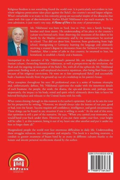 Religious freedom is not something found the world over. It is particularly not evident in Iran where religious persecution takes place against the Bahá'í, the country's second largest religion. What's remarkable is so many in this minority group are successful in spite of the obstacles that come with this type of discrimination. Author Khalil Nikkhessal is one such example. By his own admission, it just wasn't very easy. A Flame of Fire is his story of perseverance.