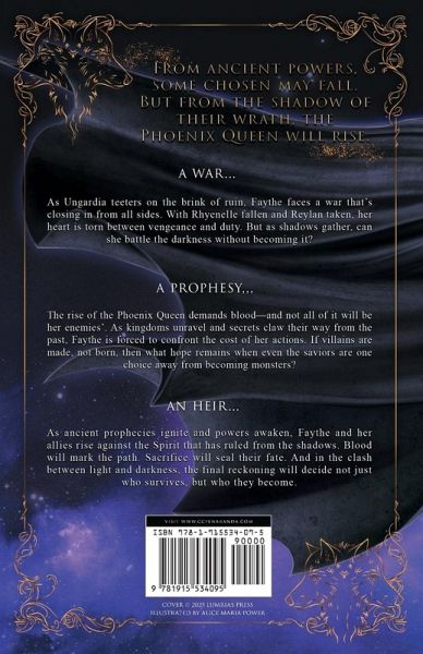 The heart-stopping, emotional finale to the epic fantasy series An Heir Comes to Rise by Chloe C. Peñaranda. A War As Ungardia teeters on the brink of ruin, Faythe faces a war that's closing in from all sides. With Rhyenelle fallen and Reylan taken, her heart is torn between vengeance and duty. But as shadows gather, can she battle the darkness without becoming it? A Prophesy The rise of the Phoenix Queen demands blood-and not all of it will be her enemies'. As kingdoms unravel and secrets claw their way from the past, Faythe is forced to confront the cost of her actions. If villains are made, not born, then what hope remains when even the saviors are one choice away from becoming monsters? An Heir As ancient prophecies ignite and powers awaken, Faythe and her allies rise against the Spirit that has ruled from the shadows. Blood will mark the path. Sacrifice will seal their fate. And in the clash between light and darkness, the final reckoning will decide not just who survives, but who they become. From ancient powers, some chosen must fall. But from the shadow of their wrath, the Phoenix Queen will rise.