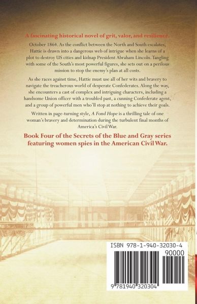 Follow the thrilling journey of Hattie Logan, a smart and resourceful spy for the Union during the American Civil War. October 1864. As the conflict between the North and South escalates, Hattie is drawn into a dangerous web of intrigue when she learns of a plot to destroy US cities and kidnap President Abraham Lincoln. Embroiled in a tangled web of some of the South's most powerful figures, she sets out on a perilous mission to stop the enemy's plan at all costs. As she races against time to stop the enemy's plans, Hattie must use all of her wits and bravery to navigate the treacherous world of desperate Confederates. Along the way, she encounters a cast of complex and intriguing characters, including a handsome Union officer with a troubled past, a cunning Confederate agent, and a group of powerful men who'll stop at nothing to achieve their goals. Written in page-turning style, A Fond Hope is a thrilling tale of one woman's bravery and determination during the turbulent final months of America's Civil War. A fascinating historical novel of grit, valor, and resilience, this book is sure to be a hit with fans of historical fiction and spy stories alike.