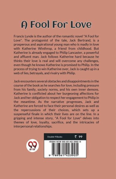 Francis Lynde is the author of the romantic novel "A Fool for Love". The protagonist of the tale, Jack Bertrand, is a prosperous and aspirational young man who is madly in love with Katherine Winthrop, a friend from childhood. But Katherine is already engaged to Philip Lancaster, a powerful and affluent man. Jack follows Katherine hard because he thinks their love is real and will overcome any challenges, even though he knows Katherine is promised to Philip. In the process of trying to win Katherine over, Jack is caught up in a web of lies, betrayals, and rivalry with Philip. Jack encounters several obstacles and disappointments in the course of the book as he searches for love, including pressure from his family, society norms, and his own inner demons. Katherine is conflicted about her burgeoning affections for Jack and her obligation to respect her engagement to Philip in the meantime. As the narrative progresses, Jack and Katherine are forced to face their personal desires as well as the repercussions of their choices, which sets up a suspenseful finale in which their lives are on the line. In a gripping and intense story, "A Fool for Love" delves into themes of love, loyalty, sacrifice, and the intricacies of interpersonal relationships.