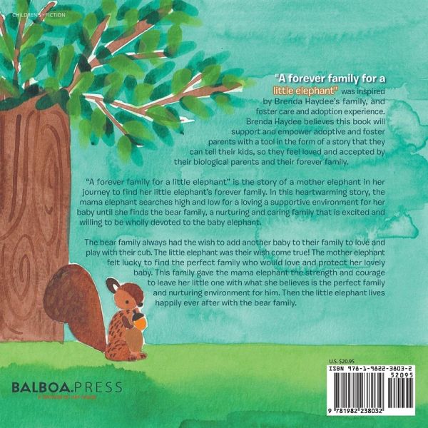 "A forever family for a little elephant" was inspired by Brenda Haydee's family, and foster care and adoption experience. Brenda Haydee believes this book will support and empower adoptive and foster parents with a tool in the form of a story that they can tell their kids, so they feel loved and accepted by their biological parents and their forever family. "A forever family for a little elephant" is the story of a mother elephant in her journey to find her little elephant's forever family. In this heartwarming story, the mama elephant searches high and low for a loving a supportive environment for her baby until she finds the bear family, a nurturing and caring family that is excited and willing to be wholly devoted to the baby elephant. The bear family always had the wish to add another baby to their family to love and play with their cub. The little elephant was their wish come true! The mother elephant felt lucky to find the perfect family who would love and protect her lovely baby. This family gave the mama elephant the strength and courage to leave her little one with what she believes is the perfect family and nurturing environment for him. Then the little elephant lives happily ever after with the bear family.
