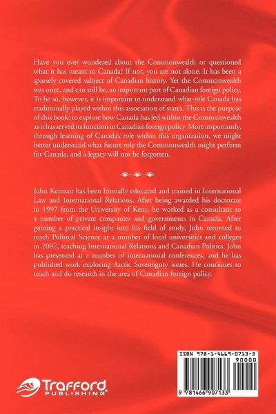 Have you ever wondered about the Commonwealth or questioned what it has meant to Canada? If not, you are not alone. It has been a sparsely covered subject of Canadian history. Yet the Commonwealth was once, and can still be, an important part of Canadian foreign policy. To be so, however, it is important to understand what role Canada has traditionally played within this association of states. This is the purpose of this book: to explore how Canada has led within the Commonwealth as it has served its function in Canadian foreign policy. More importantly, through learning of Canada's role within this organization, we might better understand what future role the Commonwealth might perform for Canada, and a legacy will not be forgotten.