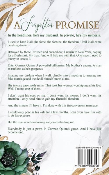 In the headlines, he's my husband. In private, he's my nemesis. I used to have it all: the fame, the fortune, the freedom. Until it all came crashing down. Betrayed by those I trusted and burned out, I return to New York, hoping for a fresh start. My trust fund will help me with that. One issue: I need to marry to access it. Enter Cormac Quinn. A powerful billionaire. My brother's enemy. A man as ruthless as he's gorgeous. Imagine my disdain when I walk blindly into a meeting to arrange my fake marriage and the devil himself stares at me. His intense gaze holds mine. That look has women worshiping at his feet. Well, I'm not one of them. I don't want his eyes on me. I don't want his money. I don't want his attention. I only need him to gain my financial freedom. And the minute I'll have it, I'm done with this (in)convenient marriage. I would only pose as his wife for a few months. I can even have fun with it. At his expense. But the man is set on owning me, on controlling me. Everybody is just a pawn in Cormac Quinn's game. And I have just become one.