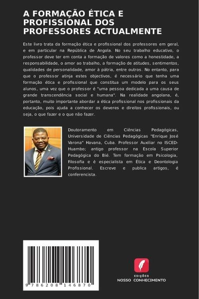 Este livro trata da formação ética e profissional dos professores em geral, e em particular na República de Angola. No seu trabalho educativo, o professor deve ter em conta a formação de valores como a honestidade, a responsabilidade, o amor ao trabalho, a formação de atitudes, sentimentos, qualidades de personalidade, amor à pátria, entre outros. No entanto, para que o professor atinja estes objectivos, é necessário que tenha uma formação ética e profissional que constitua um modelo para os seus alunos, uma vez que o professor é "uma pessoa dedicada a uma causa de grande transcendência social e humana". Na realidade angolana, é, portanto, muito importante abordar a ética profissional nos profissionais da educação, pois ajuda a conhecer os deveres e direitos profissionais, ou seja, o que fazer e o que não fazer.