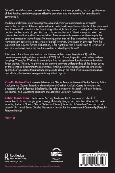 The book undertakes a consistent procession and empirical examination of available information to arrive at the recognition that in order to dissolve the complexity of the associated threat, we need to scrutinize the functioning of far-right threat groups. In-depth and consistent analysis on their mode of operation and mindset enables us to identify ways to detect and counter their malicious efforts and activities. The theoretical framework for the analysis lies upon the concept of wave theory. The main question that this book examines is whether far-right terrorism constitutes a new wave of global terrorism. One question emerges from this statement that requires further elaboration. Is far-right terrorism a novel wave of terrorism? If yes, how is it novel and what are the novelties or developments in it?