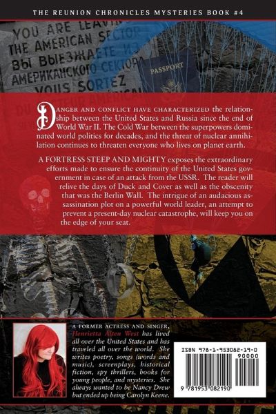 Intrigue surrounding the audacious plot to assassinate a powerful world leader will keep you on the edge of your seat. A FORTRESS STEEP AND MIGHTY is part historical novel and part prediction for what might be coming. Bogged down in a war he can't seem to win, will Russia's Hitleresque president decide to use nuclear weapons to achieve his objective? The cold war is hot again. The democratic countries of the world face off against totalitarian forces bent on genocide and the destruction of freedom and self-determination. The world holds its collective breath as the threat of nuclear annihilation threatens everyone on planet earth. A FORTRESS STEEP AND MIGHTY looks back at the extraordinary efforts made to ensure the continuity of the United States government in case of an attack from the USSR. The reader will relive the days of "Duck and Cover" as well as the obscenity that was the Berlin Wall. This thriller, the fourth book in the Reunion Chronicles Mysteries series, reaches into the future with an outrageously bold plan intended to prevent a present-day nuclear catastrophe.