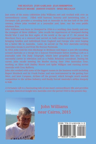 THE BEATLES JUDY GARLAND JEAN SHRIMPTON DUDLEY MOORE JOHNNY O'KEEFE SPIKE MILLIGAN Just some of the many celebrities John Williams met and worked with over an extraordinary career Filled with humour, honesty and interesting tales, A Fortunate Life, provides a revealing look at Australia in the last half of the 20th century, where John worked as a journalist and, later, ran his own public relations firm. John Williams was born in Liverpool in 1934 to a working class family and was the youngest of three children. John recalls his experiences of Liverpool during World War 2 and his first sights of the world as at the age of 17. He joined the Merchant Navy as a steward and served on bulk carriers and passenger liners bringing families and individuals from England and Europe who were hoping for a better life in Australia. Later, he served on the New Australia carrying Australian troops to and from the Korean Peninsula. In 1953, John took his own discharge in Brisbane and began a new life travelling around Australia as a stooge for a famous Ventriloquist before landing a job as a journalist with The Daily Telegraph which later morphed into a very successful career in television and as a Public Relations consultant. During his career John recalls meeting the Beatles during their 1964 Australian Tour, working on films with Dudley Moore and Spike Milligan and running across Australia with Tony Rafferty. John also worked with some of the biggest names in the business world including Rupert Murdoch and Sir Frank Packer and was instrumental in the getting East West, and later Compass, Airlines off the ground, which brought much needed competition to the airline industry that finally forced Australia's airline duopoly to fold. A Fortunate Life is a fascinating tale of one man's extraordinary life and provides a unique, historical insight into Australia over the period 1950 to the present day.