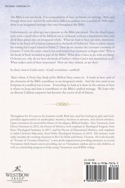 There is not much enjoyment in contemplating a single piece from a jigsaw puzzle. It may create some level of interest-but not much. Even looking at three pieces, or even ten pieces, isn't that interesting. What makes a jigsaw puzzle attention-grabbing is the process of figuring out how the pieces fit together. Slowly, a pleasant, unified, comprehensible picture begins to appear. The more complete that image becomes, the more anxious we are to grab another piece and see where and how it fits. In some ways, the books and stories of the Old Testament are like the pieces to a jigsaw puzzle. In and of themselves they create some level of interest-but they don't become attention-grabbing until we begin to see how the individual pieces relate to the whole. For many, the study of the Old Testament may never reach beyond looking at the individual pieces. Nothing fits the pieces together. How is the book of Leviticus connected to the book of Hebrews? How is John's reason for writing his Gospel related to Psalm 2? How do we connect the covenant ceremony of Genesis 15 with the cross-much less understand that ceremony to begin with? Why is the book of Ruth included as part of the Bible? What does it have to do with anything? Or better yet, why do we have the book of Esther-where God is not mentioned at all? What makes each of these important? How are they related, or are they? In short, how is God's story-God's revelation-unified? And that's where A Forty-Day Study of the Biblical Story comes in. We journey through Scripture in a way that brings all of the bits and pieces into a unified whole-because our focus is going to be on what makes the Biblical Story whole: Jesus Christ. We examine the Old Testament through the lens of what we learn about Jesus.