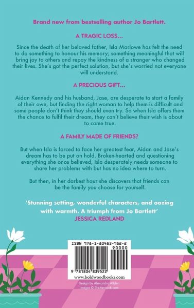 The BRAND NEW Instalment of bestselling author Jo Bartlett's Cornish Country Hospital Series. Perfect for fans of Grey's Anatomy! A tragic loss... Since the death of her beloved father, Isla Marlowe has felt the need to do something to honour his memory; something meaningful that will bring joy to others and repay the kindness of a stranger who changed their lives. She's got the perfect solution, but she's worried not everyone will understand. A precious gift... Aidan Kennedy and his husband, Jase, are desperate to start a family of their own, but finding the right woman to help them is difficult and some people don't think they should even try. So when Isla offers them the chance to fulfil their dream, they can't believe their wish is about to come true. A family made of friends? But when Isla is forced to face her greatest fear, Aidan and Jase's dream has to be put on hold. Broken-hearted and questioning everything she once believed, Isla desperately needs someone to share her problems with but has no idea where to turn. But then, in her darkest hour she discovers that friends can be the family you choose for yourself. A wonderful new series from Jo Bartlett, about strong friendship, selfless dedication and being brave in love. Perfect for fans of Jessica Redland, Holly Martin and Tilly Tennant. Praise for Jo Bartlett: 'Stunning setting, wonderful characters, and oozing with warmth. A triumph from Jo Bartlett.' Bestselling author, Jessica Redland 'Perfectly written and set in the beating heart of a community, this story is a wonderful slice of Cornish escapism.' Bestselling author, Helen J Rolfe 'I was drawn in from the first word, I've laughed and cried, what a really lovely story' ⭐️⭐️⭐️⭐️⭐️ Reader Review 'I would highly recommend this book for a bit of fantastic escapism and love conquering all.' ⭐️⭐️⭐️⭐️⭐️ Reader Review 'A heart-warming tale which I enjoyed reading very much.' ⭐️⭐️⭐️⭐️⭐️ Reader Review