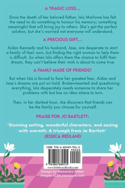 The BRAND NEW Instalment of bestselling author Jo Bartlett's Cornish Country Hospital Series. Perfect for fans of Grey's Anatomy! A tragic loss... Since the death of her beloved father, Isla Marlowe has felt the need to do something to honour his memory; something meaningful that will bring joy to others and repay the kindness of a stranger who changed their lives. She's got the perfect solution, but she's worried not everyone will understand. A precious gift... Aidan Kennedy and his husband, Jase, are desperate to start a family of their own, but finding the right woman to help them is difficult and some people don't think they should even try. So when Isla offers them the chance to fulfil their dream, they can't believe their wish is about to come true. A family made of friends? But when Isla is forced to face her greatest fear, Aidan and Jase's dream has to be put on hold. Broken-hearted and questioning everything she once believed, Isla desperately needs someone to share her problems with but has no idea where to turn. But then, in her darkest hour she discovers that friends can be the family you choose for yourself. A wonderful new series from Jo Bartlett, about strong friendship, selfless dedication and being brave in love. Perfect for fans of Jessica Redland, Holly Martin and Tilly Tennant. Praise for Jo Bartlett: 'Stunning setting, wonderful characters, and oozing with warmth. A triumph from Jo Bartlett.' Bestselling author, Jessica Redland 'Perfectly written and set in the beating heart of a community, this story is a wonderful slice of Cornish escapism.' Bestselling author, Helen J Rolfe 'I was drawn in from the first word, I've laughed and cried, what a really lovely story' ⭐️⭐️⭐️⭐️⭐️ Reader Review 'I would highly recommend this book for a bit of fantastic escapism and love conquering all.' ⭐️⭐️⭐️⭐️⭐️ Reader Review 'A heart-warming tale which I enjoyed reading very much.' ⭐️⭐️⭐️⭐️⭐️ Reader Review