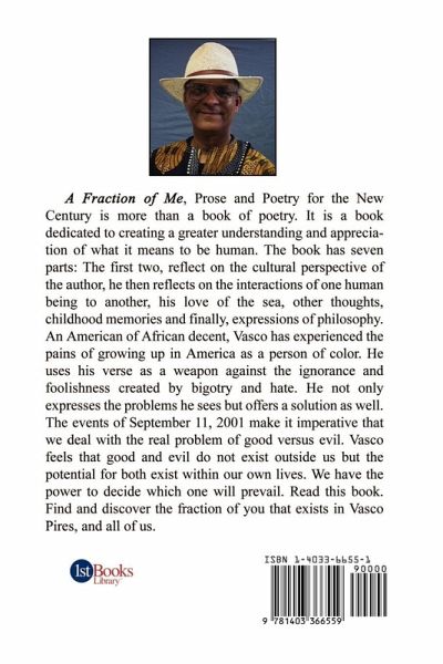 A Fraction of Me, is more than a book of poetry. It is a book dedicated to creating an understanding and appreciation of what it means to be human. Author, Vasco Pires uses culture, relationships, the sea, memories and philosophy.