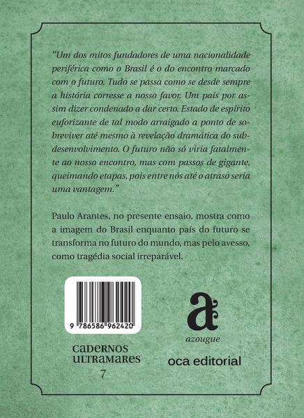 Cadernos Ultramares seeks to present Brazilian culture and thought in a qualified way, through volumes bringing together important essays by renowned authors in different areas of knowledge. The philosopher Paulo Arantes, one of the most shrewd analysts of Brazilian society, shows in this essay how the image of Brazil as a country of the future is transformed into the future of the world, but inside out, as an irreparable social tragedy.