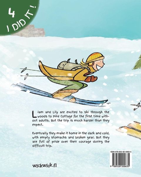 Liam and Lily are excited to ski through the woods to Pine Cottage for the first time without adults. But the trip is much harder than they expect. Eventually they make it home in the dark and cold, with empty stomachs and broken gear. But they are full of pride over their courage during the difficult trip.