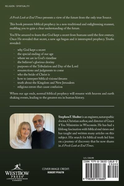 A Fresh Look at End Times presents a view of the future from the only true Source. This book presents biblical prophecy in a non-traditional and enlightening manner, enabling you to gain a clear understanding of the future. You'll be amazed to learn that God kept a secret from humans until the first century. Once He revealed that secret, a new age began and it interrupted prophecy. Truths revealed: why God kept a secret the special ending of our age where we are in God's timeline the believer's glorious destiny purposes of the Tribulation and Day of the Lord resurrections and judgments to come who the bride of Christ is how to interpret biblical visions/dreams truth about the Kingdom and New Jerusalem religious errors that cause confusion When our age ends, normal biblical prophecy will resume with heaven and earth shaking events, leading to the greatest era in human history.
