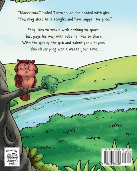 A fun rhyming picture book for the young imagination. Frog is a humble traveller who has nothing to spare, but with his gift of the gab and talent for a rhyme, he gets what he needs by trading his charming odes with all the other animals he meets on his adventures. "Bravo!" cheered Rabbit, as he clapped with glee. "You may take that carrot and another for free."