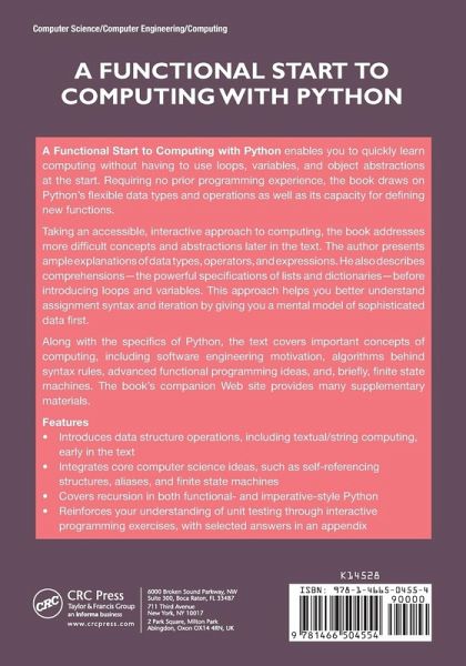 Taking a student-friendly, interactive approach to teach computing, this text enables students to quickly learn computing without having to use loops, variables, and object abstractions at the start. Requiring no prior programming experience, the book draws on Python's flexible data types and operations as well as its capacity for defining new functions. Along with the specifics of Python, the author covers important concepts of computing. A companion website provides many supplementary materials.