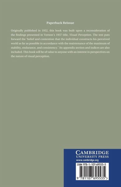 Originally published in 1952, this book was built upon a reconsideration of the findings presented in Vernon's 1937 title, Visual Perception. The text puts forward the 'belief and contention that the individual constructs his perceived world as far as possible in accordance with the maintenance of the maximum of stability, endurance, and consistency'. An appendix section and indices are also included. This book will be of value to anyone with an interest in perspectives on the nature of visual perception.