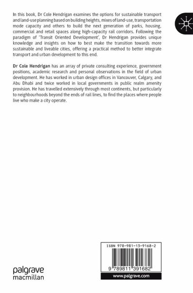 In this book, Dr Cole Hendrigan examines the options for sustainable transport and land-use planning based on building heights, mixes of land-use, transportation mode capacity and others to build the next generation of parks, housing, commercial and retail spaces along high-capacity rail corridors. Following the paradigm of 'Transit Oriented Development', Dr Hendrigan provides unique knowledge and insights on how to best make the transition towards more sustainable and livable cities, offering a practical method to better integrate transport and urban development to this end.