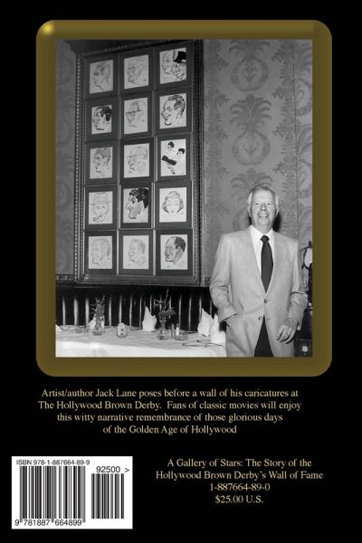 Jack Lane, the Brown Derby's resident caricaturist, has written this book which brings to life the charisma, the glamour, the happiness and the tears that made the Brown Derby a true Hollywood legend. Jack traces the "growing up" of both Hollywood and the Derby down through the years. He shares many anecdotes of the stars' antics as well as events that occurred in Hollywood and especially the Brown Derby. His caricatures of stars such as Bob Hope, George Burns, Cary Grant, Carol Burnett, Gene Autry, Lucille Ball and many other stars of the Golden Age of Hollywood are beautifully reproduced.