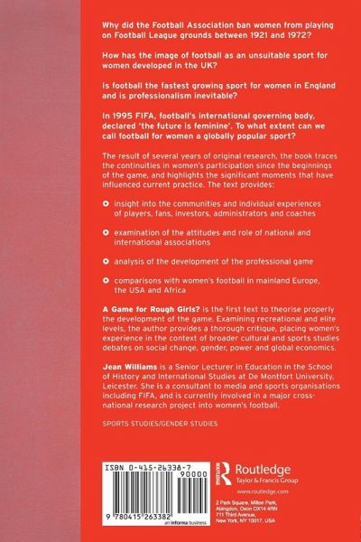Jean Williams is a senior lecturer in education in the School of History and International Studies at De Montfort University, Leicester. She is a consultant to media and sports organisations including FIFA, and is currently involved in a major cross-national research project into women's football.