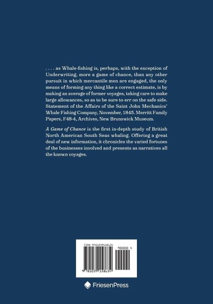 It's almost impossible to imagine spending eight months at sea "without once putting foot on land." But that's exactly what whalers experienced when playing the dangerous "game of chance," hunting down leviathans for oil and bone-all for a "lay," or share, of the vessel's spoils. A Game of Chance is the first comprehensive, in-depth study of British North American South Seas whaling. Author Andrea Kirkpatrick takes readers on a series of fascinating and sometimes fantastical journeys as she chronicles in great detail the story of a largely forgotten industry that operated out of Nova Scotia and New Brunswick ports from the 1760s to 1850. Kirkpatrick plumbed the depths of myriad logbooks and journals to piece together the often-murky tales of an astonishing number of ships. In this treatise covering a century of whaling, she shares details such as ownership, tonnage, voyages, captains' pedigrees, and names of crewmen, including nascent whaler Herman Melville, author of Moby-Dick. Hoping for "greasy luck," the men who manned these ships found both camaraderie and competition as they hunted the world's whaling grounds from Cape Horn to Kamchatka, many circumnavigating the globe during their careers. They battled squalls and high seas, scurvy and venereal disease, heartbreak and homesickness-and sometimes each other. Many never returned home, their bodies committed to the deep or buried on foreign land. Written in two parts-landward and seaward-Kirkpatrick's clear prose and adoption of whaling lingua franca brings this high-risk venture to the fore with authenticity, newly revealed facts, and remarkable stories of adventure.