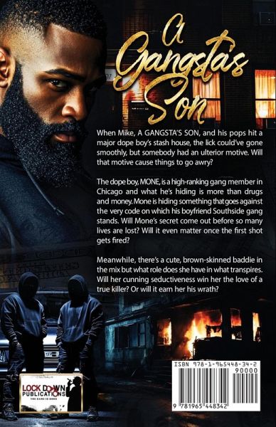 When Mike, A GANGSTA'S SON, and his pops hit a major dope boy's stash house, the lick could've gone smoothly, but somebody had an ulterior motive. Will that motive cause things to go awry? The dope boy, MONE, is a high-ranking gang member in Chicago and what he's hiding is more than drugs and money. Mone is hiding something that goes against the very code on which his boyfriend Southside gang stands. Will Mone's secret come out before so many lives are lost? Will it even matter once the first shot gets fired? Meanwhile, there's a cute, brown-skinned baddie in the mix but what role does she have in what transpires. Will her cunning seductiveness win her the love of a true killer? Or will it earn her his wrath?