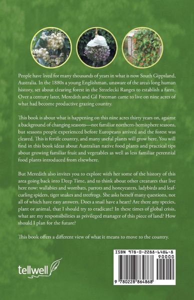 People have lived for many thousands of years in what is now South Gippsland, Australia. In the 1880s a young Englishman, unaware of the area's long human history, set about clearing forest in the Strzelecki Ranges to establish a farm. Over a century later, Meredith and Gil Freeman came to live on nine acres of what had become productive grazing country. This book is about what is happening on this nine acres thirty years on, against a background of changing seasons-not familiar northern-hemisphere seasons, but seasons people experienced before Europeans arrived and the forest was cleared. This is fertile country, and many useful plants will grow here. You will find in this book ideas about Australian native food plants and practical tips about growing familiar fruit and vegetables as well as less familiar perennial food plants introduced from elsewhere. But Meredith also invites you to explore with her some of the history of this area going back into Deep Time, and to think about other creatures that live here now: wallabies and wombats, parrots and honeyeaters, ladybirds and leaf-curling spiders, tiger snakes and treefrogs. She asks herself many questions, not all of which have easy answers. Does a snail have a heart? Are there any species, plant or animal, that I should try to eradicate? In these times of global crisis, what are my responsibilities as privileged manager of this piece of land? How should I plan for the future? This book offers a different view of what it means to move to the country.