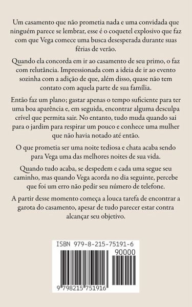 Um casamento que não prometia nada e uma convidada que ninguém parece se lembrar, esse é o coquetel explosivo que faz com que Vega comece uma busca desesperada durante suas férias de verão. Quando ela concorda em ir ao casamento de seu primo, o faz com relutância. Impressionada com a ideia de ir ao evento sozinha com a adição de que, além disso, quase não tem contato com aquela parte de sua família. Então faz um plano; gastar apenas o tempo suficiente para ter uma boa aparência e, em seguida, encontrar alguma desculpa crível que permita sair. No entanto, tudo muda quando sai para o jardim para respirar um pouco e conhece uma mulher que não havia notado até então. O que prometia ser uma noite tediosa e chata acaba sendo para Vega uma das melhores noites de sua vida. Quando tudo acaba, se despedem e cada uma segue seu caminho, mas quando Vega acorda no dia seguinte, percebe que foi um erro não pedir seu número de telefone. A partir desse momento começa a louca tarefa de encontrar a garota do casamento, apesar de tudo parecer estar contra alcançar seu objetivo.