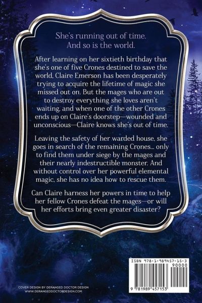 She's running out of time. And so is the world. After learning on her sixtieth birthday that she's one of five Crones destined to save the world, Claire Emerson has been desperately trying to acquire the lifetime of magic she missed out on. But the mages who are out to destroy everything she loves aren't waiting, and when one of the other Crones ends up on Claire's doorstep-wounded and unconscious-Claire knows she's out of time. Leaving the safety of her warded house, she goes in search of the remaining Crones... only to find them under siege by the mages and their nearly indestructible monster. And without control over her powerful elemental magic, she has no idea how to rescue them. Can Claire harness her powers in time to help her fellow Crones defeat the mages-or will her efforts bring even greater disaster?