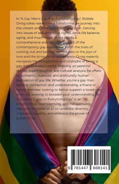 In "A Gay Man's Guide to Everything Gay", Robbie Oring takes readers on a transformative journey into the vibrant and diverse world of gay men. Delving into issues of sexuality, love, rights, work-life balance, aging, and much more, Oring paints a comprehensive and intimate portrait of the contemporary gay experience. From the trials of coming out and battling stereotypes to the joys of love and the struggle for acceptance, Oring expertly navigates the complexities and triumphs of being a gay man in today's world. Drawing on personal stories, expert insights, and cultural analysis, he offers an authentic, nuanced, and profoundly human exploration of gay life. Whether you're a gay man seeking connection and understanding, a friend or family member looking to better support a loved one, or an ally seeking to broaden your understanding, "A Gay Man's Guide to Everything Gay" is an enlightening, heartwarming, and indispensable resource. It invites us all to celebrate diversity, champion equality, and embrace the power of authenticity. Join Oring on this journey, and discover the rich tapestry that constitutes the world of gay men.
