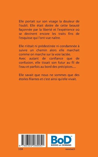 Elle portait sur son visage la douleur de l'oubli.Elle était dotée de cette beauté façonnée par la liberté et l'expérience où se devinent encore les traits fins de l'esquisse qui l'ont vue naître.Elle n'était ni prédestinée ni condamnée à suivre un chemin alors elle marchait comme on marche sur la voie lactée.Avec autant de confiance que de confusion, elle tissait son futur au fil de l'eau et parfois au bord des précipices...Elle choisissait avant de s'endormir les rêves qui viendraient la hanter. Parfois pour les vivre, parfois pour les tuer.Elle riait aux éclats pour s'échapper et se cacher. Elle savait que nous ne sommes que des étoiles filantes et c'est ainsi qu'elle vivait.